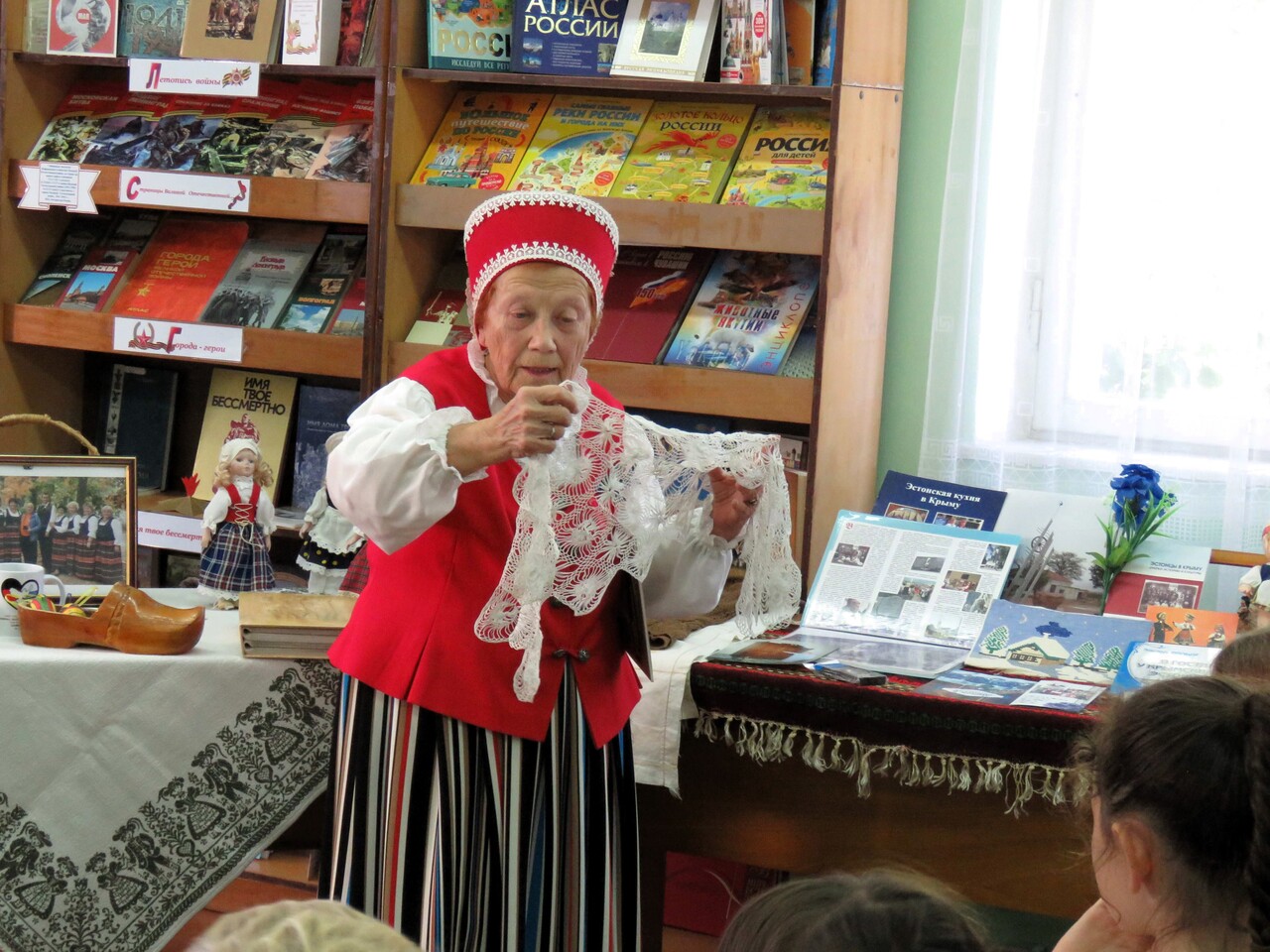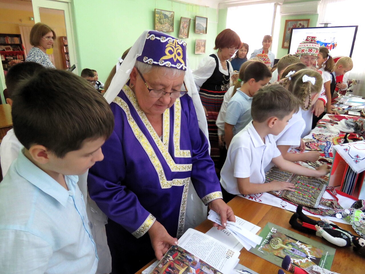 Очередная встреча прошла в Библиотеке Дружбы народов в рамках просветительского проекта библиотеки «Народов много – Родина одна». Третьеклассники севастопольской школы «Экотех» с интересом слушали представителей Крымчакского, Немецкого, Чувашского и Эстонского обществ, которые рассказывали о традициях, праздниках, костюмах, выдающихся деятелях своих народов, делились воспоминаниями. Семейные истории оживали благодаря экспонатам из личных коллекций, представленным на выставке.Школьники узнали о том, как появились в Крыму эстонцы, какие праздники отмечают немцы, из каких деталей состоит чувашский национальный костюм, как звучат крымчакские пословицы и поговорки (и даже искали их русские аналоги), услышали много других интересных фактов. Как всегда, живой интерес у ребят вызвала возможность задать вопросы и примерить национальные украшения и элементы народных костюмов.