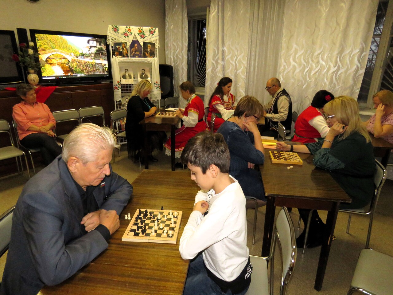 Ежегодно отмечают праздник севастопольские болгары. В этом году вечер начался необычно – с шахматно-шашечного турнира. В сеансе одновременной игры приняли участие члены общества «Изгрев» и гости – представители других национально-культурных обществ и Севастопольского Совета ветеранов-подводников. Участникам турнира вручили сладкие призы.