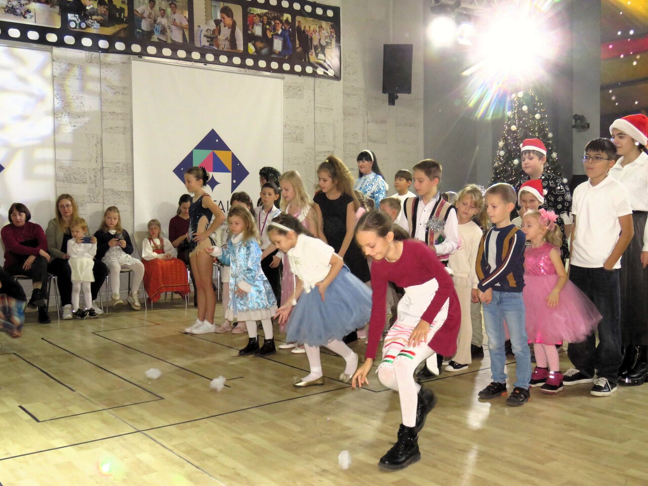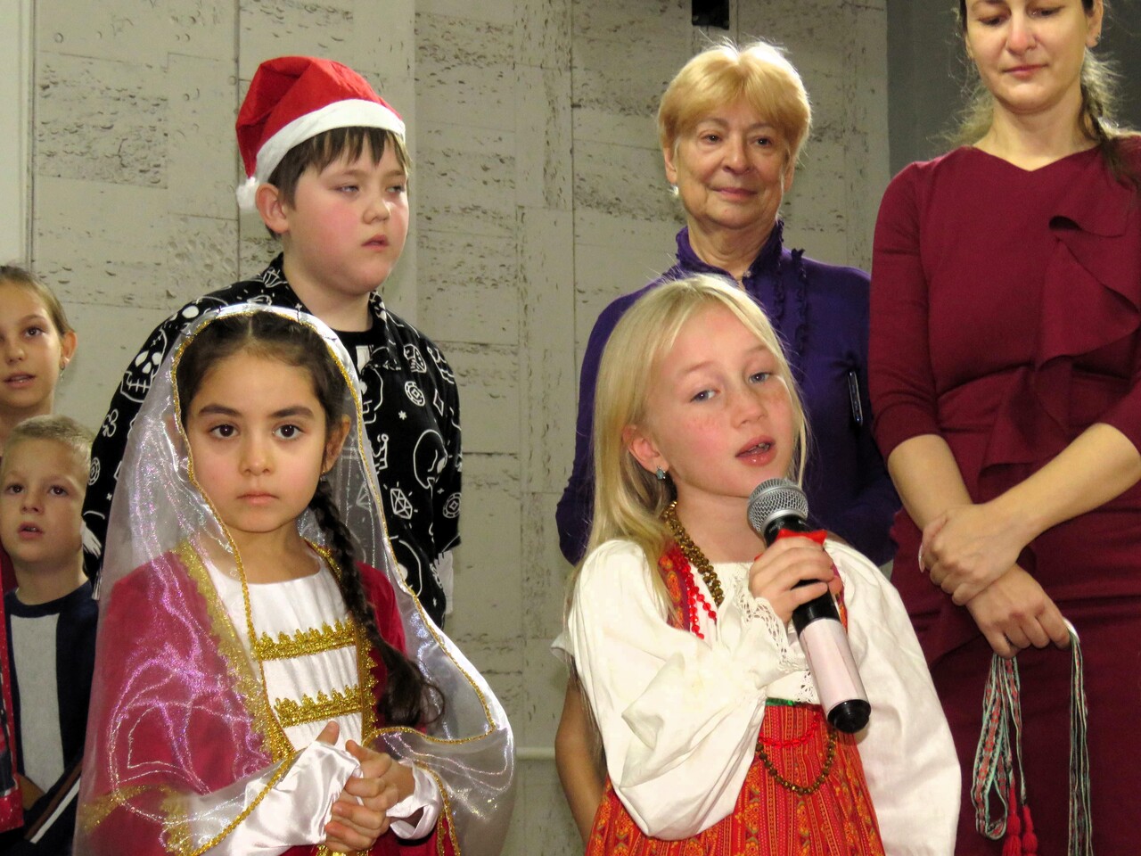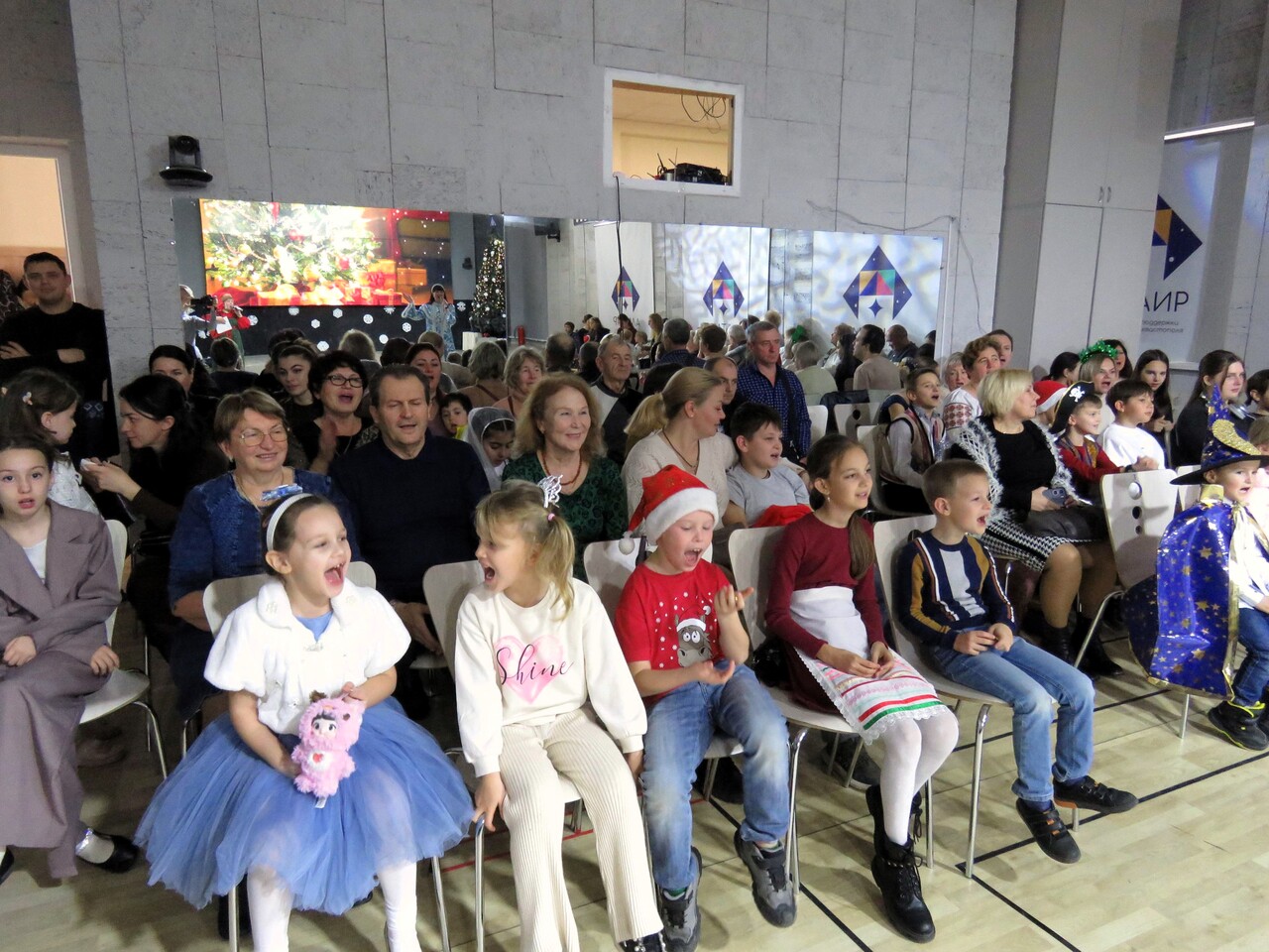 Конечно, новогодний праздник не обошёлся без его главных персонажей – Деда Мороза и Снегурочки, а также примкнувшей к ним Бабы Яги. Детей ждали песни и танцы разных народов: русские колядки и песни о зиме в исполнении ансамбля «Лагода» и польской вокальной группы «Ва-банк», яркий чувашский обрядовый хоровод, ирландские танцы от учащихся МАН, весёлые игры, увлекательные конкурсы и, конечно же, подарки от Деда Мороза. А главное – дети и сами блеснули талантами: пели песни, читали стихи, играли на музыкальных инструментах. Атмосфера праздника и волшебства подарила всем присутствующим незабываемое новогоднее настроение!