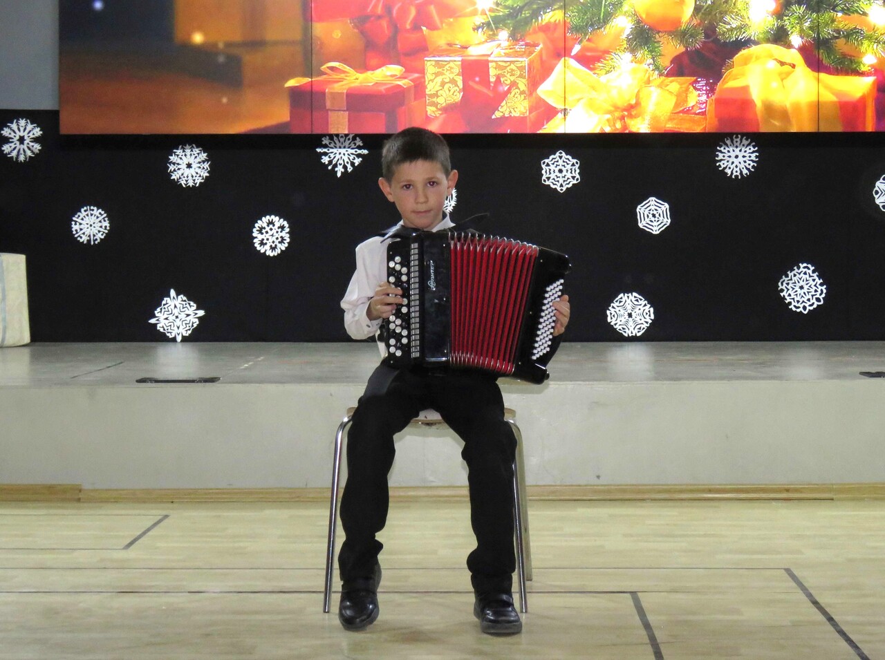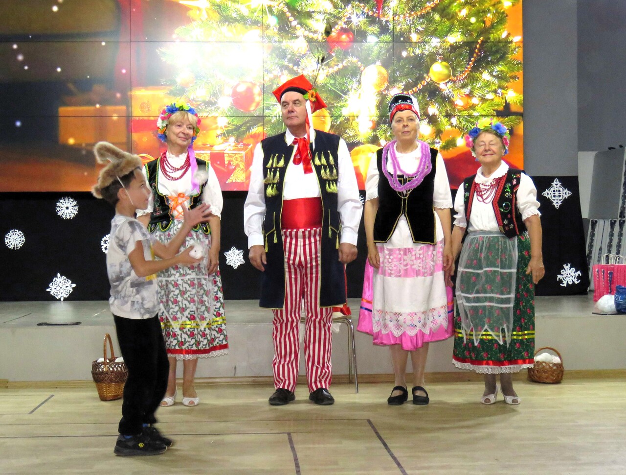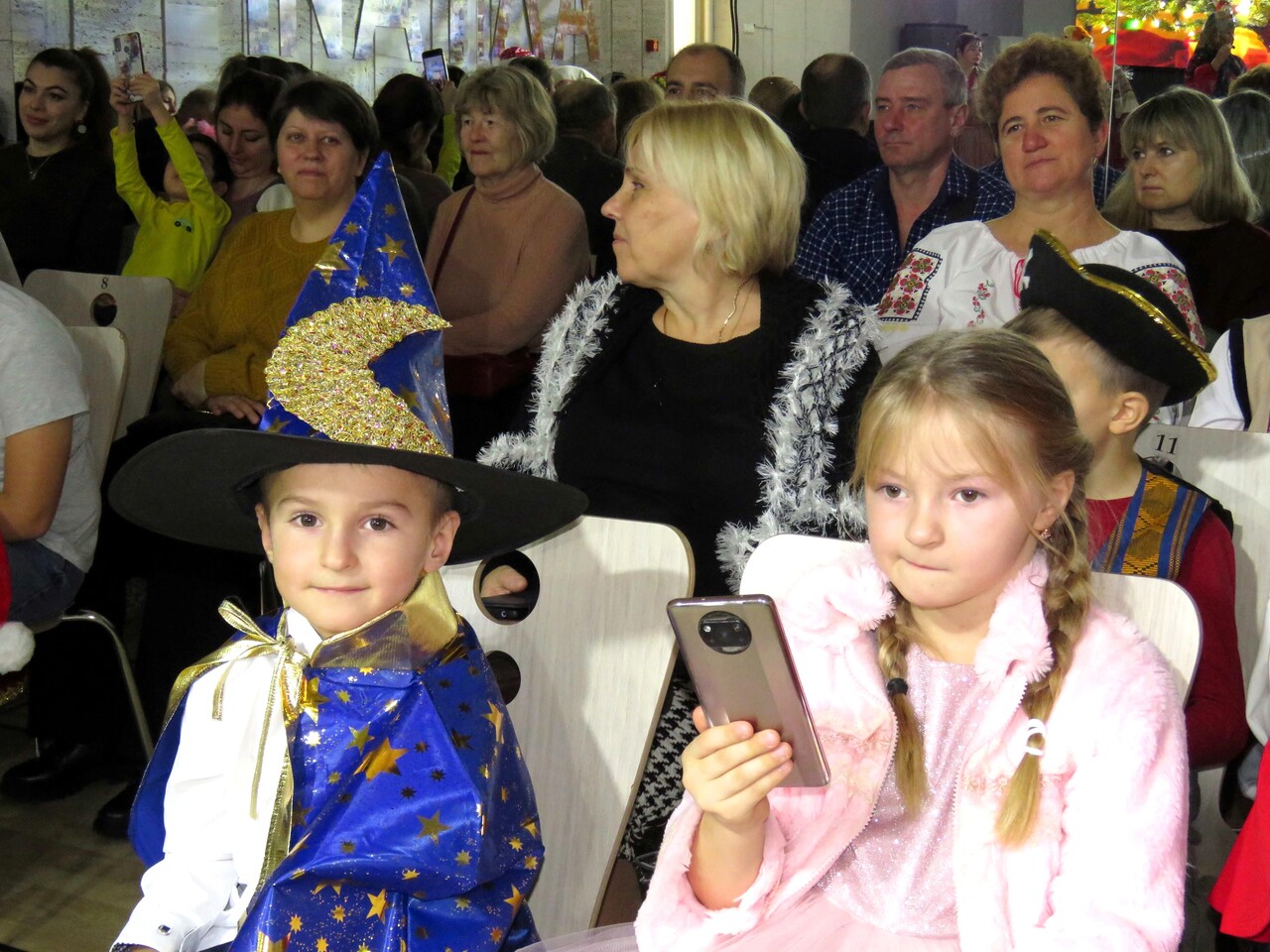 Конечно, новогодний праздник не обошёлся без его главных персонажей – Деда Мороза и Снегурочки, а также примкнувшей к ним Бабы Яги. Детей ждали песни и танцы разных народов: русские колядки и песни о зиме в исполнении ансамбля «Лагода» и польской вокальной группы «Ва-банк», яркий чувашский обрядовый хоровод, ирландские танцы от учащихся МАН, весёлые игры, увлекательные конкурсы и, конечно же, подарки от Деда Мороза. А главное – дети и сами блеснули талантами: пели песни, читали стихи, играли на музыкальных инструментах. Атмосфера праздника и волшебства подарила всем присутствующим незабываемое новогоднее настроение!