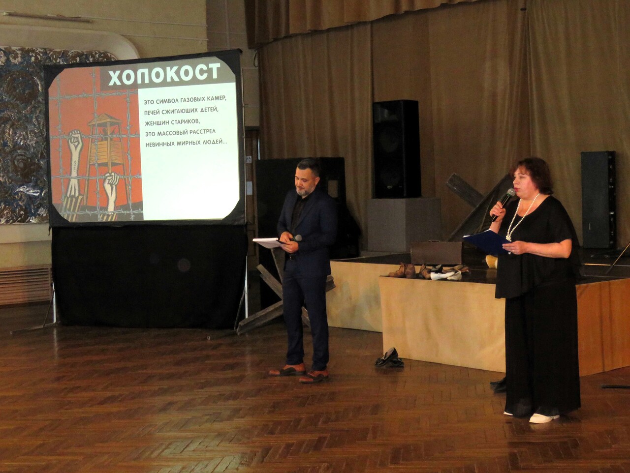Жертвами Холокоста – преследования людей по национальному признаку в годы Великой Отечественной войны – стали шесть миллионов евреев. Их расстреливали, уничтожали в газовых камерах, сжигали заживо в концентрационных лагерях. Три миллиона из них были советскими гражданами. Одним из самых страшных мест был концлагерь Саласпилс на территории оккупированной советской Латвии, в нём держали детей. Холокост в Советском Союзе начался с трагедии киевского Бабьего Яра, где за два дня было уничтожено 30 тысяч евреев. Об одном из самых чудовищных преступлений фашизма рассказывали ведущие вечера, кадры кинохроники, театральная студия «А-фишка» и другие выступающие. Вспоминили Януша Корчака – польского врача, который отказался от помилования нацистами и погиб вместе с подопечными детьми в концлагере «Треблинка» в Германии.
