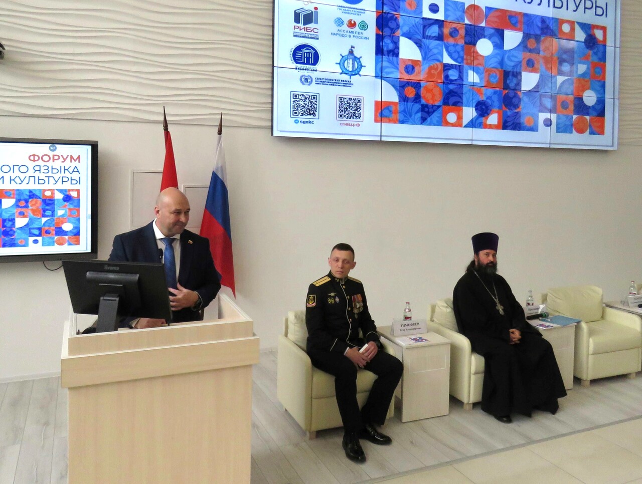 В Севастопольском государственном университете прошла 6-я Межрегиональная научно-практическая конференция «Русский язык и культура как основа межнационального диалога», открывшая традиционный Форум русского языка и культуры. О значении и роли русского языка – носителя нашей истории, культуры и традиций говорили представители органов власти, научного сообщества, духовенства, сотрудники библиотек, преподаватели и студенты. На пленарном заседании выступили председатель Законодательного Собрания Севастополя Владимир Немцев, заместитель губернатора Севастополя Игорь Михеев, протоиерей Стефан Сломчинский, представитель Ассоциации ветеранов СВО Егор Тимофеев, директор Севастопольского театра юного зрителя Андрей Маймусов.