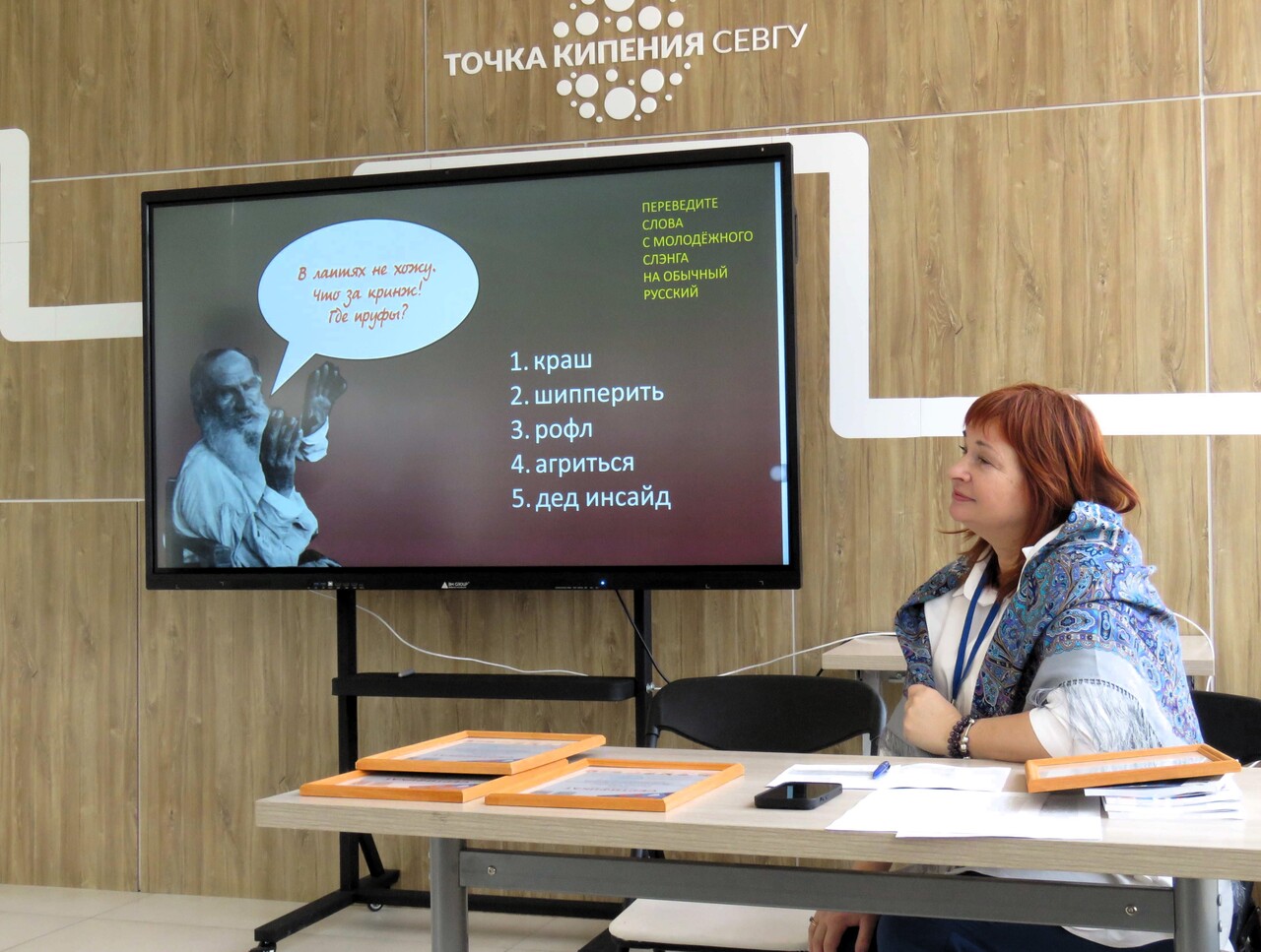 Доклады самого разного содержания, объединённые, конечно же, общей темой – сохранения и развития русского языка прозвучали во время научно-практической части конференции. Вот лишь некоторые темы: «Проблема истолкования праведных и благородных качеств личности просвещённого патриота в отечественной истории развития образования» (к.ф.н., доцент Института развития образования г. Севастополя Андрей Баранецкий), «Пушкинская коллекция» ЦГБ им. А.П. Чехова в Ялте (заведующая отделом редкой книги Ирина Ганжа), «Роль русского языка в сохранении культурного наследия народов Крыма» (библиотекарь филиала № 39 Мавиле Сеттарова), «Языковая экономия в интернет-коммуникации» (студентка СевГУ Лидия Супрунова), «Лучшие просветительские практики для сельской местности» (библиотекарь филиала № 24 Дарья Лагода) и другие. Неподдельный интерес студентов вызвали новые формы работы библиотек – интеллектуальные игры и онлайн-викторины, представленные специалистом ЦГБ им. Л.Н. Толстого Алексеем Ткаченко. И даже такая, казалось бы, нетрадиционная для форума тема как «Севастопольцы – светила отечественной электротехники», предложенная директором Севастопольского городского национально-культурного центра Ольгой Малиновской, как оказалось, имеет прямое отношение к развитию русского языка, ведь новые открытия в любой сфере влекут за собой рождение новых терминов и названий. Сценку по произведению русского классика представила «Театральная лаборатория» СевГУ.