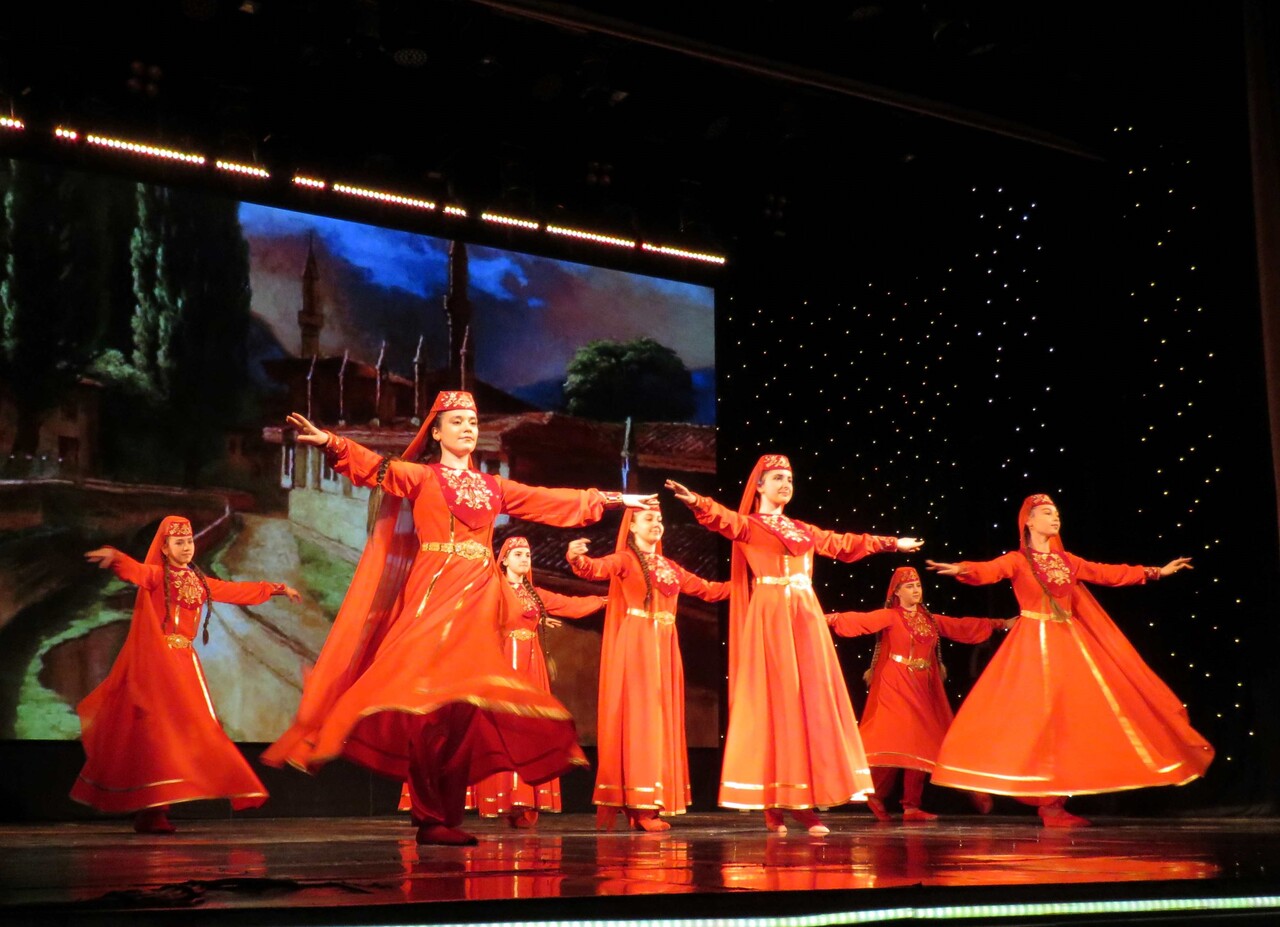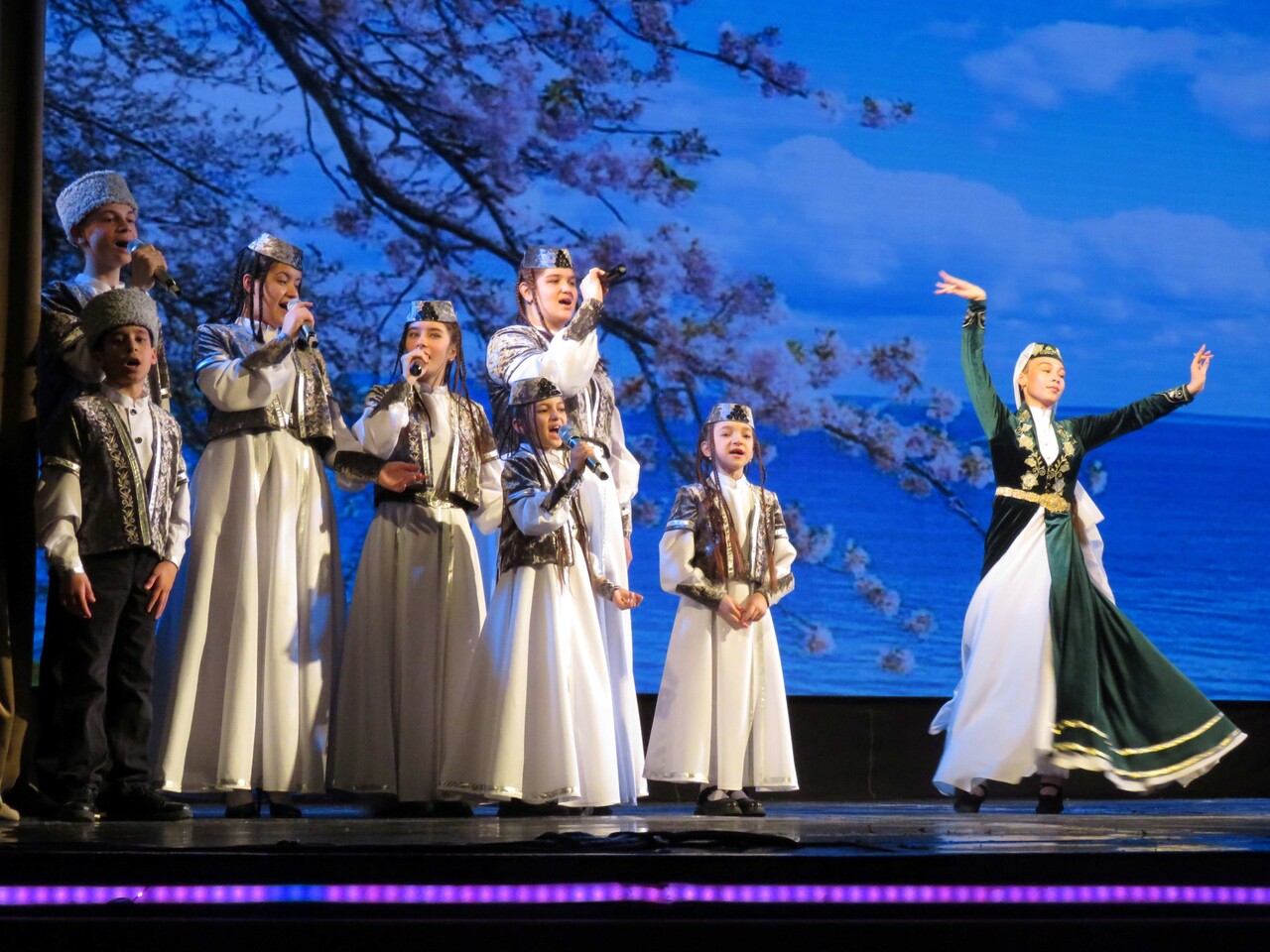Атмосфера праздника встречала зрителей уже в фойе: здесь были представлены выставки изделий народных мастеров – знаменитое золотное шитьё, картины, украшения, посуда, элементы национальной одежды, литература по истории и культуре крымскотатарского народа. В концертной программе выступили крымскотатарские творческие коллективы: ансамбли «Акъяр», «Айдын», «Куванч», «Мирас», «Эбедиет» имени Наджие Филимоновой. Вокальные и хореографические номера, зажигательные и лирические мелодии, яркие национальные костюмы на фоне цветущих крымских пейзажей создавали по-настоящему праздничное, весеннее настроение. Каждый номер сопровождался шквалом аплодисментов – а как иначе, если на сцене – юные артисты, воплощающие в ярких образах культуру своего народа? Творчество и искренние эмоции – лучший подарок зрителям в праздничный день.