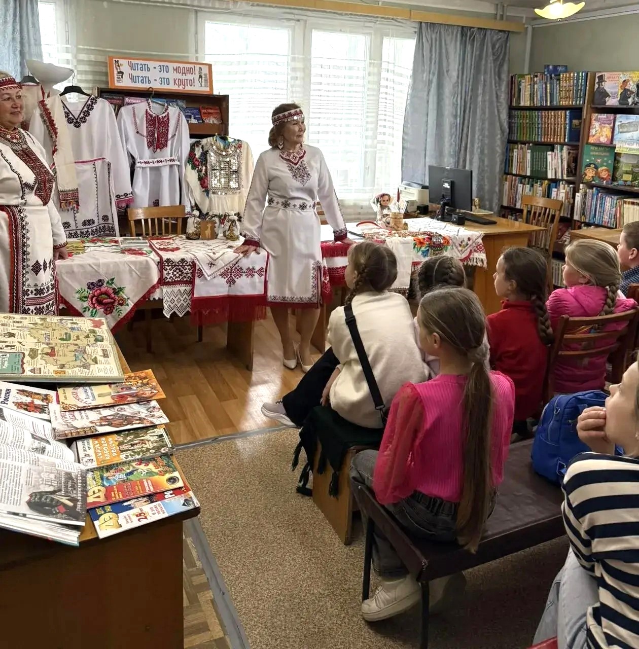 Увлекательное путешествие в мир марийской культуры, древних традиций и искусного рукоделия состоялось в детской библиотеке-филиале № 17. Для встречи со школьниками марийцы подготовили выставку национальной вышивки, украшений, костюмов, литературы. Марийцы до наших дней сохранили языческие верования и поклонение силам природы, а их народные мастерицы умеют создавать поистине уникальные образцы национального рукоделия – настоящие произведения искусства. Члены Марийского общества Севастополя не только рассказали детям о традициях и легендах своего народа, о секретах вышивки и орнаментах народного костюма, но и исполнили песню на родном языке. Завершилась эта удивительная встреча традиционной примеркой национальных костюмов и украшений.