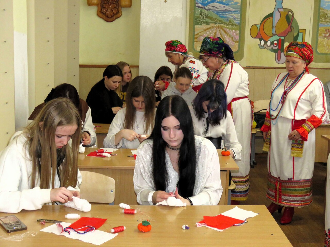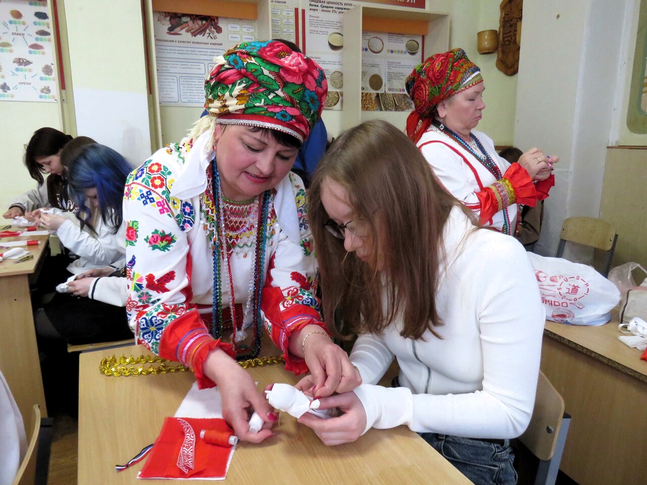 Прикоснуться к символике и эстетике мордовского костюма все желающие смогли на мастер-классе по изготовлению народной куклы в национальном наряде и головном уборе «панго». Его провела мастерица Ольга Глазунова, помогали участницам мастер-класса севастопольские мордовки.