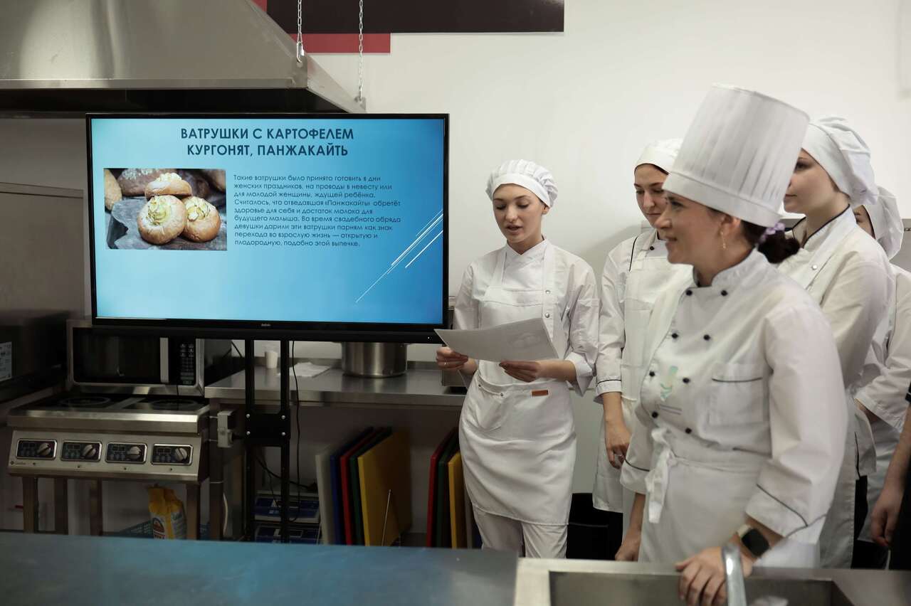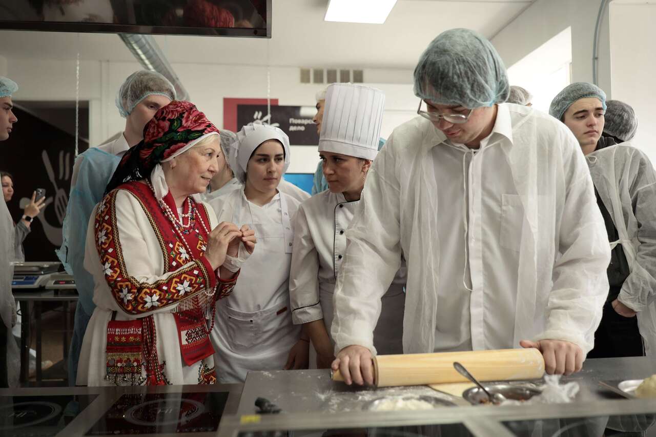 На кулинарном мастер-классе будущие повара и кондитеры постигали секреты мордовской народной кухни, в том числе приготовления знаменитой «медвежьей лапы» (мордовской котлеты).