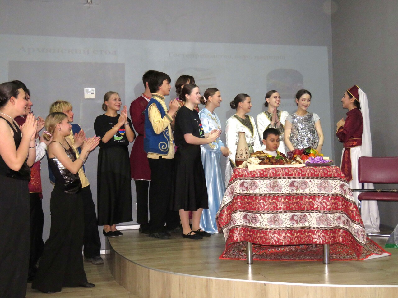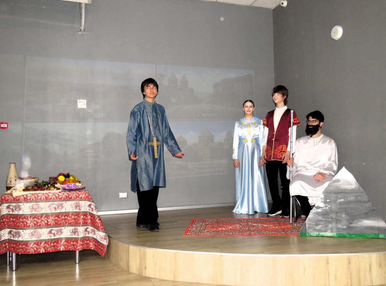 Но главным событием дня стал рассказ об Армении. Его вели студенты, представившие видеофильм об этой удивительной стране и музыкально-театрализованную программу, в которой нашлось место и героям армянского эпоса, и бытовым зарисовкам, и старинным мелодиям, и современным ритмам, и настоящему армянскому столу. Эта программа, наполненная искренними эмоциями и глубоким уважением к культуре Армении, рассказала о народе, который умеет хранить и передавать свои традиции. Как признался в заключение председатель Армянского общества Севастополя Эдуард Арамян: «Только армянин (или армянка) может вызвать у армянина слёзы рассказом об Армении». Легко поверить, что студенты, готовясь к фестивалю, и сами полюбили Армению!