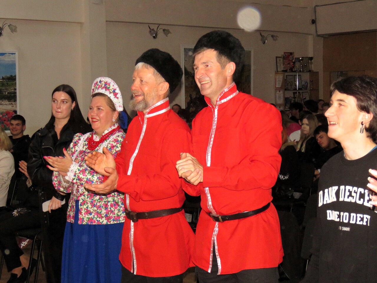 Русские народные песни, пляски и хороводы объединили студентов, педагогов и представителей Общества русской культуры Севастополя. Участники форума восторженно принимали фольклорную студию «Лагода» и, конечно, бурно поддерживали своих. К слову, в колледже есть не только студенческий, но и преподавательский музыкальный коллектив!