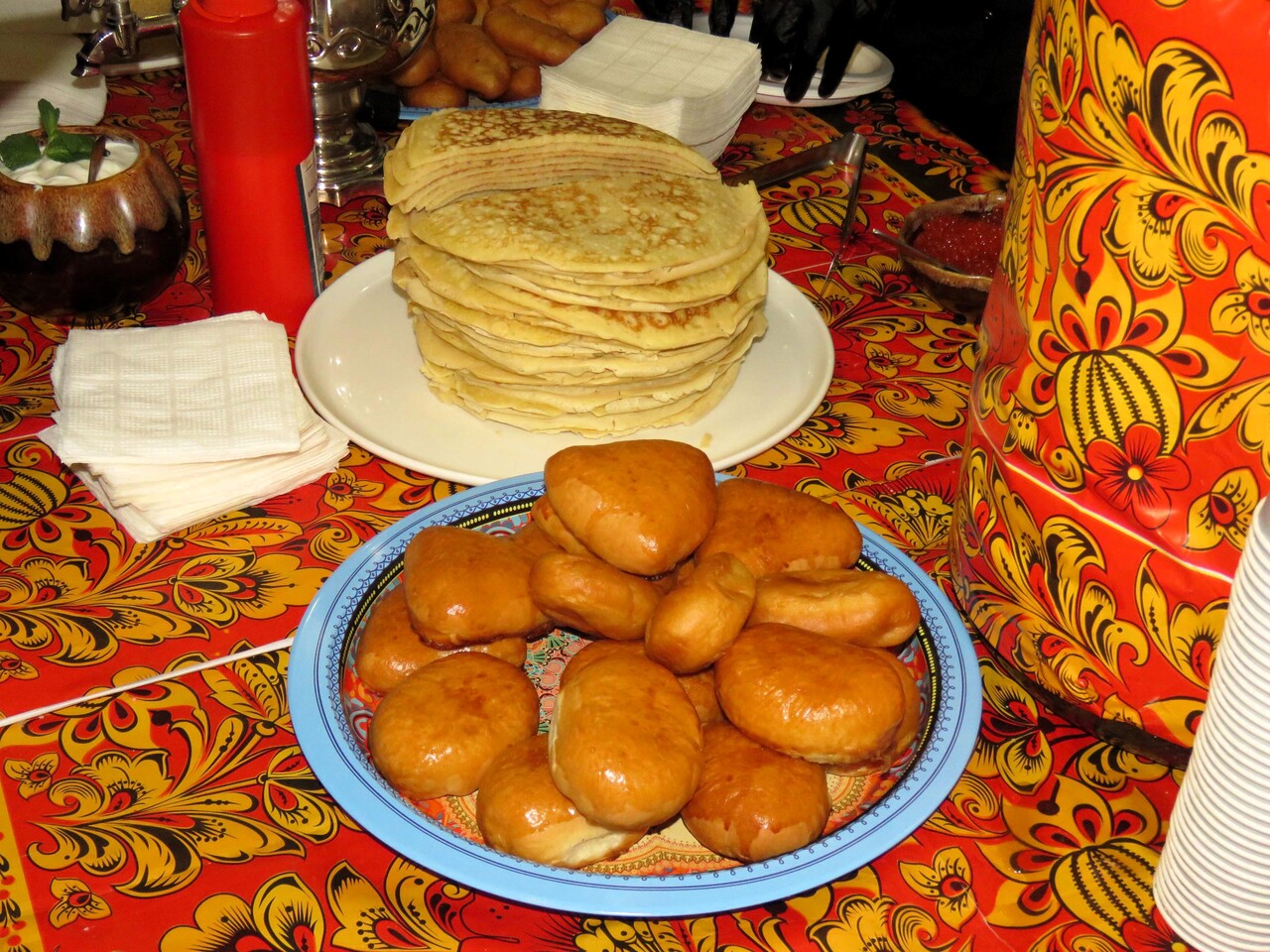 После концерта всех от души накормили блюдами русской народной кухни – пельменями да блинами, гречневой кашей с грибами да пирогами.